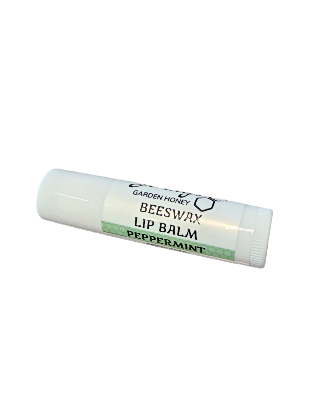 Handmade beeswax lip balm (0.15 oz) made with beeswax, shea butter, coconut oil, and jojoba oil.